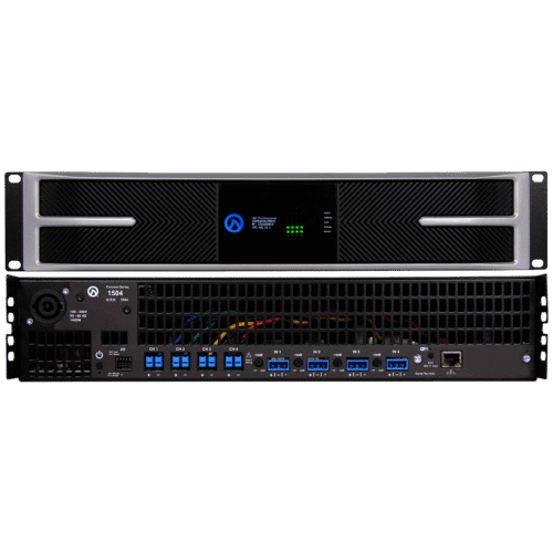 L’amplificateur fournit 150 W par canal sur des charges 4 Ω, 8 Ω, 70 V et 100 V, garantissant une compatibilité étendue avec divers types de haut-parleurs. Il intègre un DSP avancé permettant le routage des entrées, l’égalisation, la gestion des filtres de croisement, les limiteurs configurables et la surveillance des charges en temps réel pour des performances optimales.