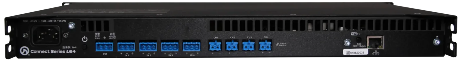 Conçu pour une performance fiable, le CONNECT CS164 dispose d’entrées analogiques entièrement routables, de ports I/O externes pour la commande à distance On/Off et la surveillance des défauts, ainsi que d’un étage de sortie Class-D efficace réduisant la consommation électrique. Ce modèle offre une solution complète pour intégrer une amplification réseau puissante et personnalisable dans des systèmes audio professionnels.